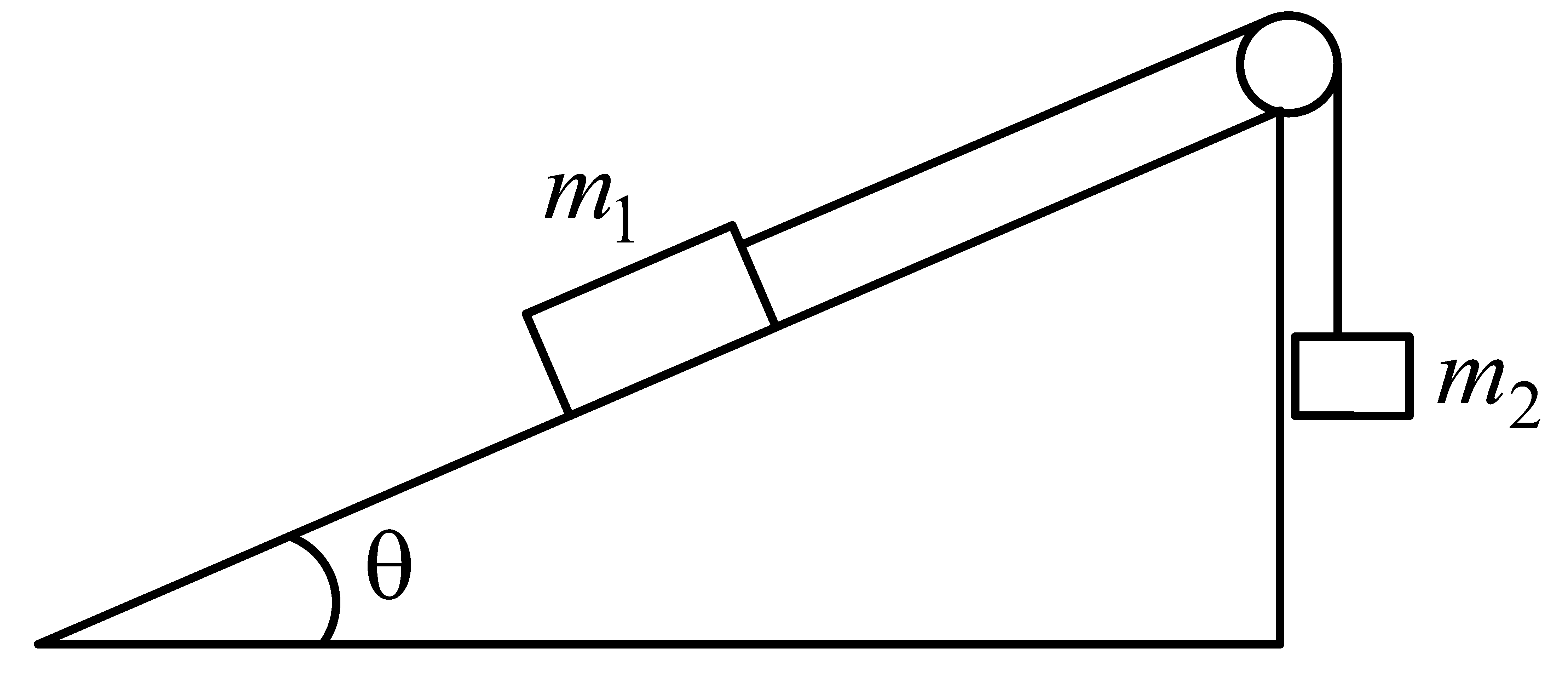 Here, is normal to the incline and tension along the string up the incline. As the string and the pulley are all light and smooth, the tension in the string is uniform everywhere.
